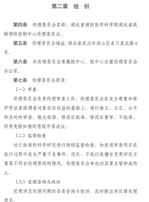 湖北省疾病預(yù)防控制中心倫理委員會(huì)章程
