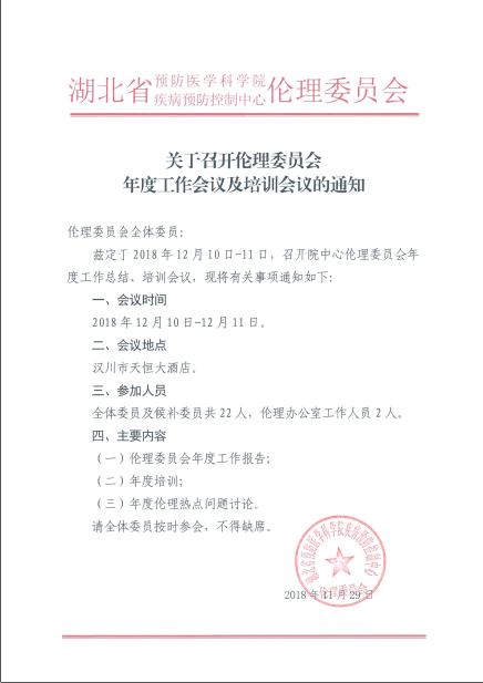 2018年院中心倫理委員會年度工作會議及培訓(xùn)會議通知