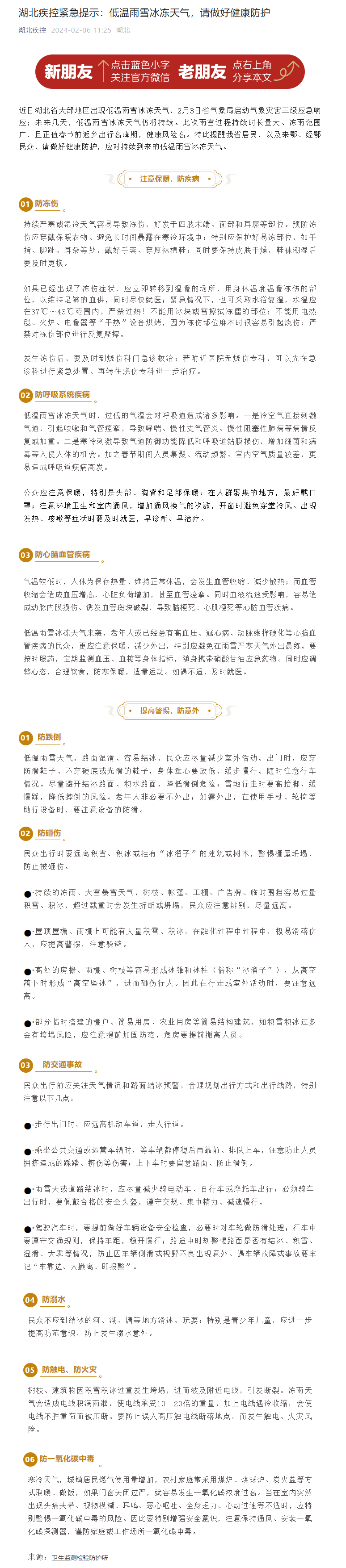 湖北疾控緊急提示:低溫雨雪冰凍天氣,請做好健康防護(hù)