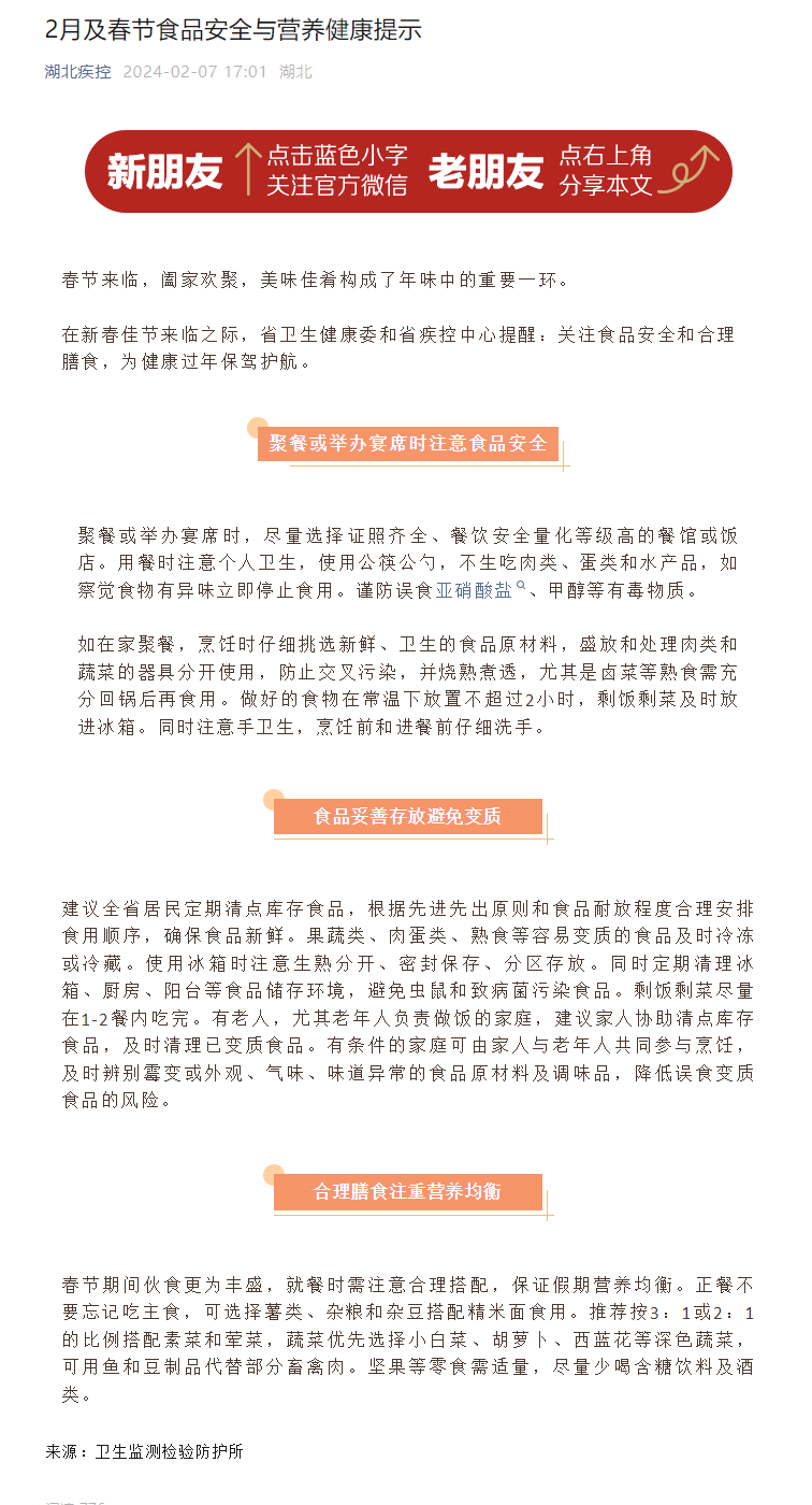 2月及春節(jié)食品安全與營養(yǎng)健康提示