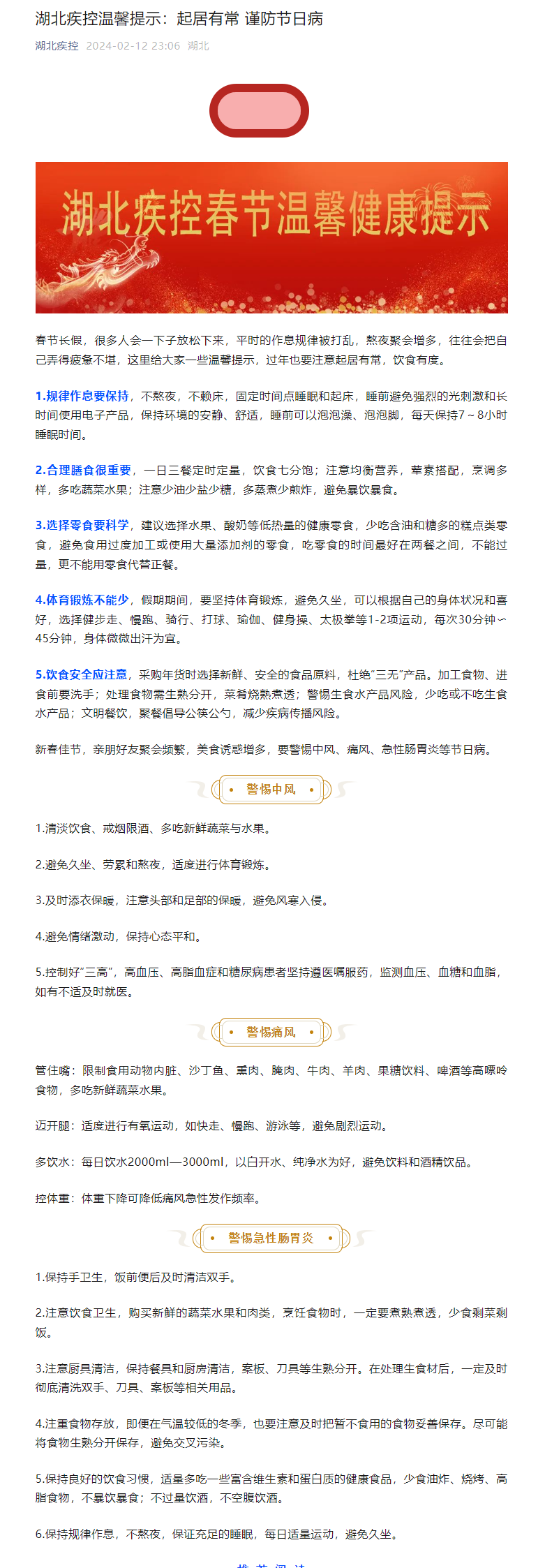 湖北疾控溫馨提示:起居有常 謹防節(jié)日病