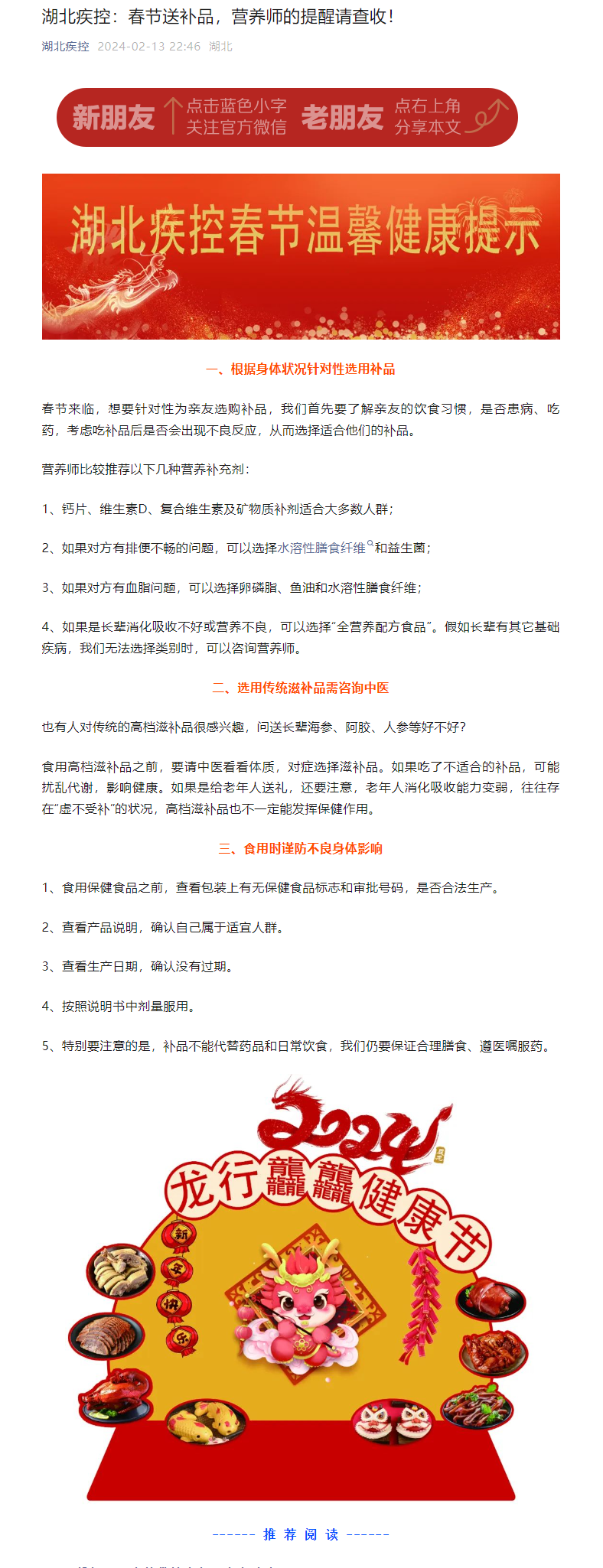 湖北疾控:春節(jié)送補(bǔ)品,營養(yǎng)師的提醒請查收!