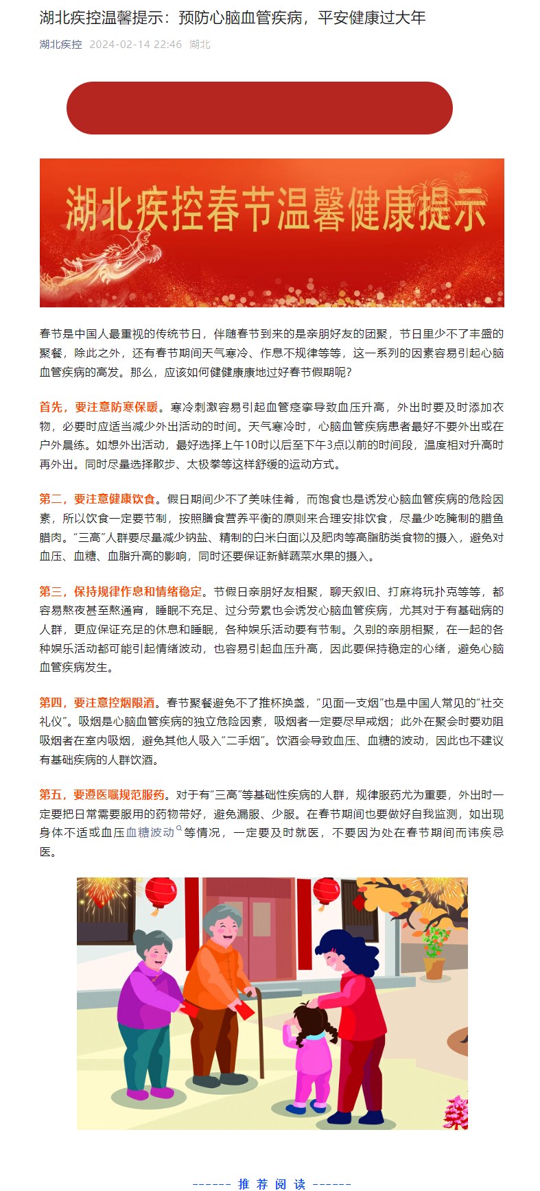 湖北疾控溫馨提示:預(yù)防心腦血管疾病,平安健康過大年