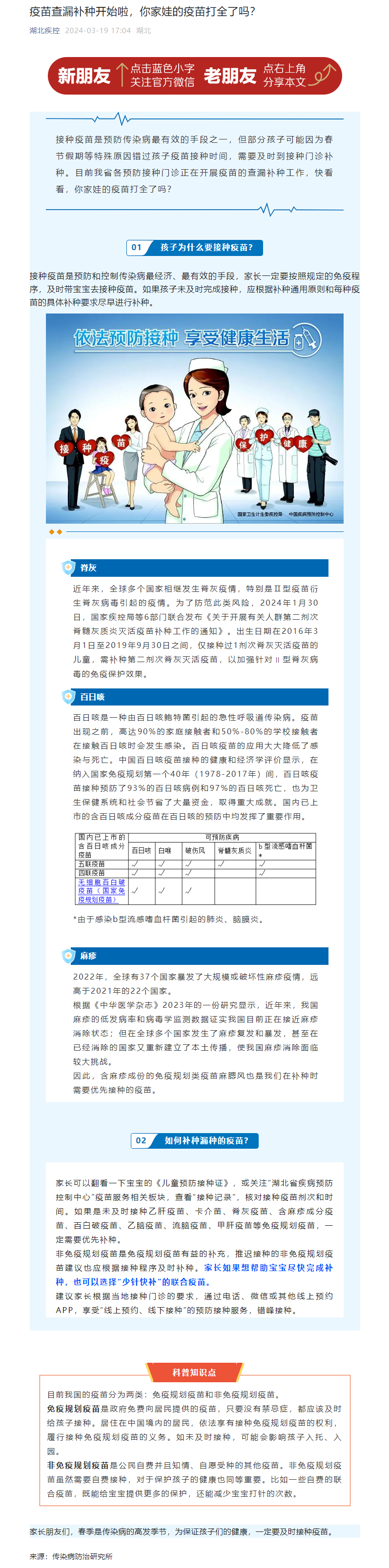 疫苗查漏補種開始啦,你家娃的疫苗打全了嗎?