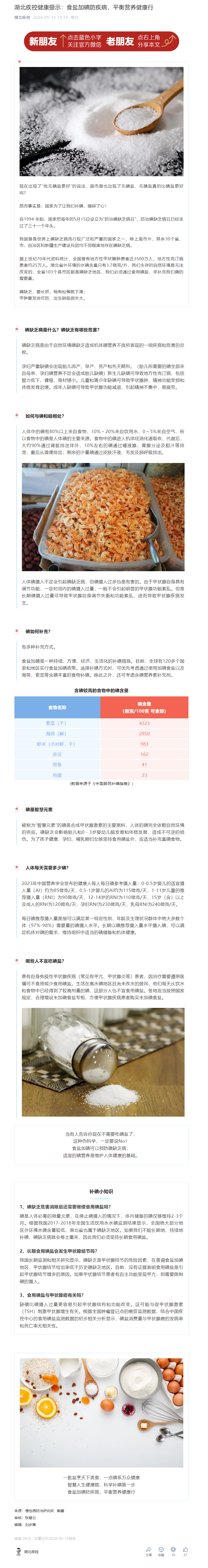 湖北疾控健康提示:食鹽加碘防疾病,平衡營養(yǎng)健康行