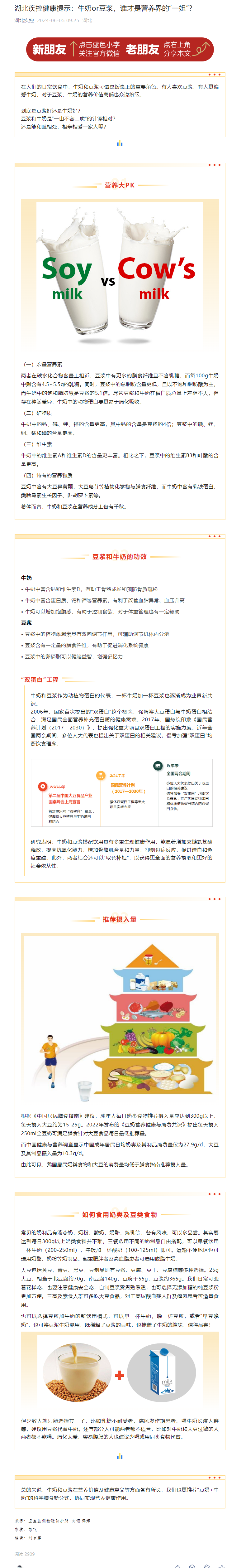 湖北疾控健康提示:牛奶or豆?jié){,誰才是營養(yǎng)界的“一姐”?
