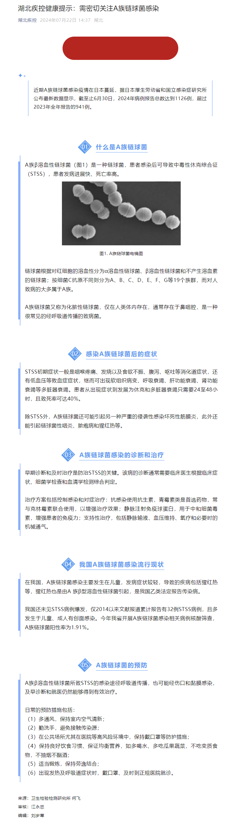 湖北疾控健康提示:需密切關(guān)注A族鏈球菌感染