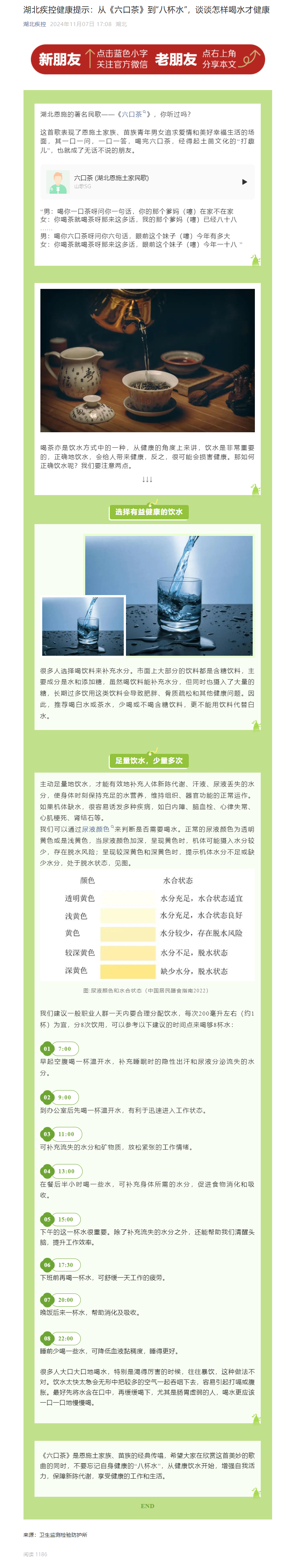 湖北疾控健康提示:從《六口茶》到“八杯水”,談?wù)勗鯓雍人沤】?/h2>