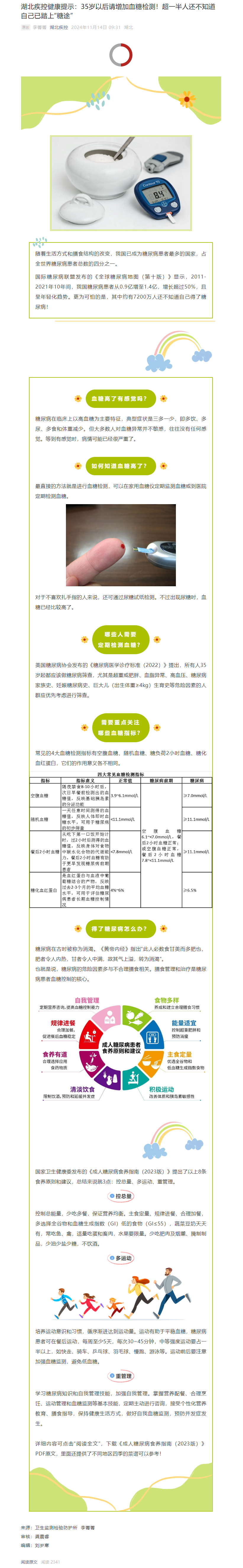湖北疾控健康提示:35歲以后請(qǐng)?jiān)黾友菣z測(cè)!超一半人還不知道自己已踏上“糖途”