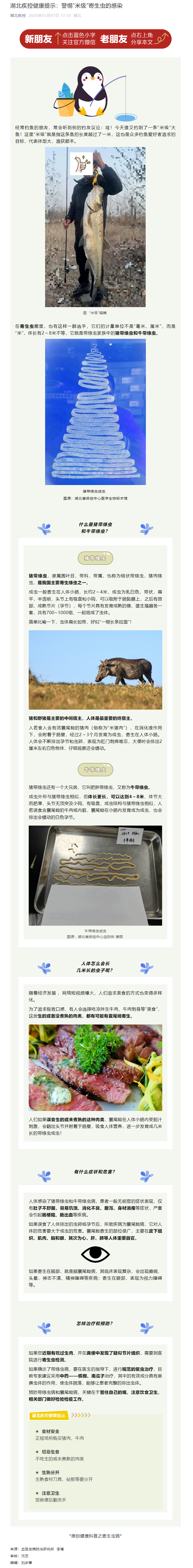 湖北疾控健康提示:警惕“米級”寄生蟲的感染