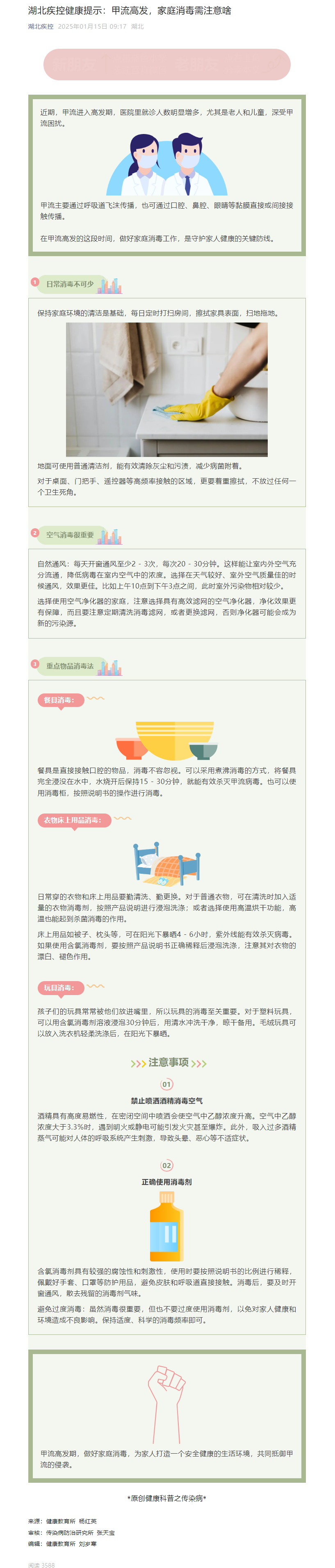 湖北疾控健康提示:甲流高發(fā),家庭消毒需注意啥