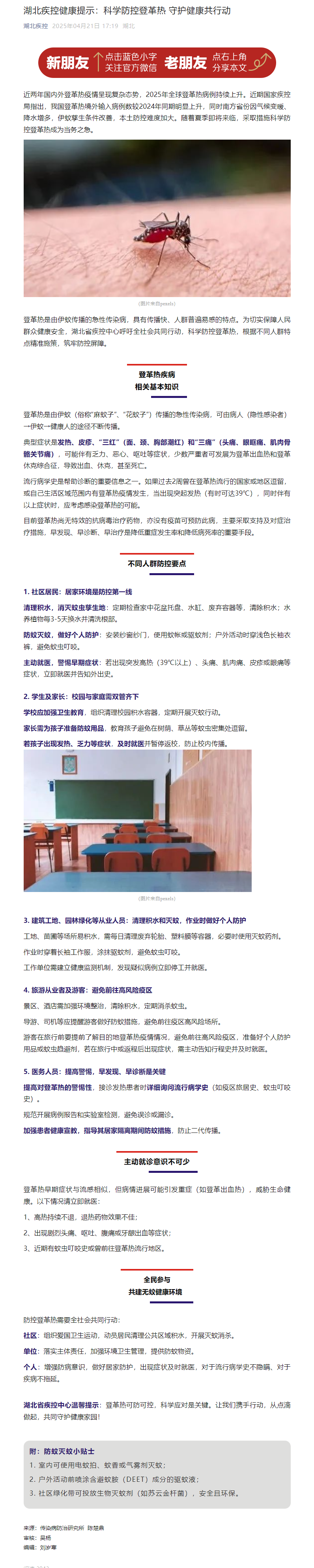 湖北疾控健康提示:科學(xué)防控登革熱 守護(hù)健康共行動(dòng)