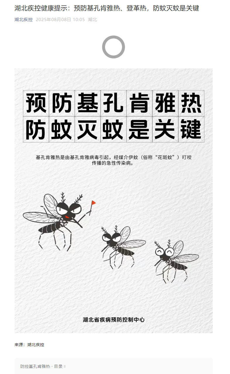 湖北疾控健康提示:預(yù)防基孔肯雅熱、登革熱,防蚊滅蚊是關(guān)鍵