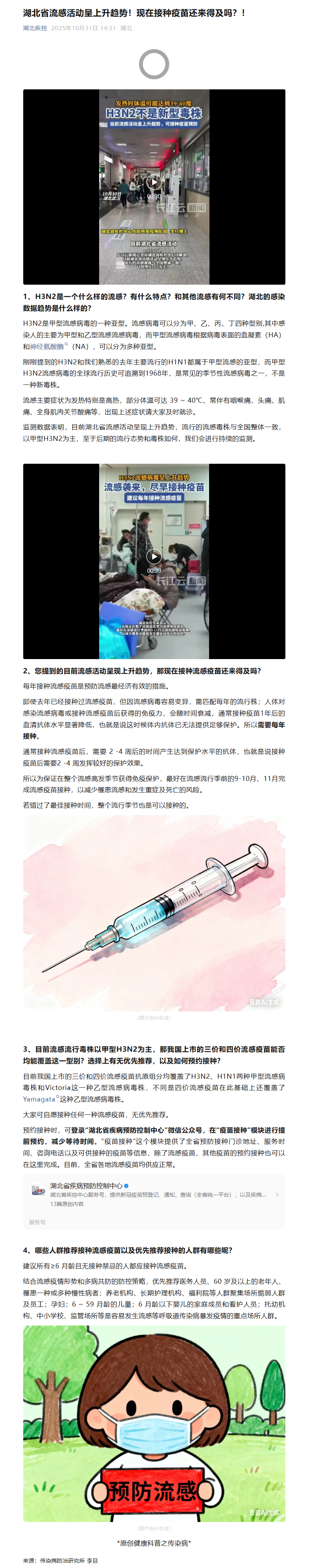湖北省流感活動呈上升趨勢!現(xiàn)在接種疫苗還來得及嗎?!