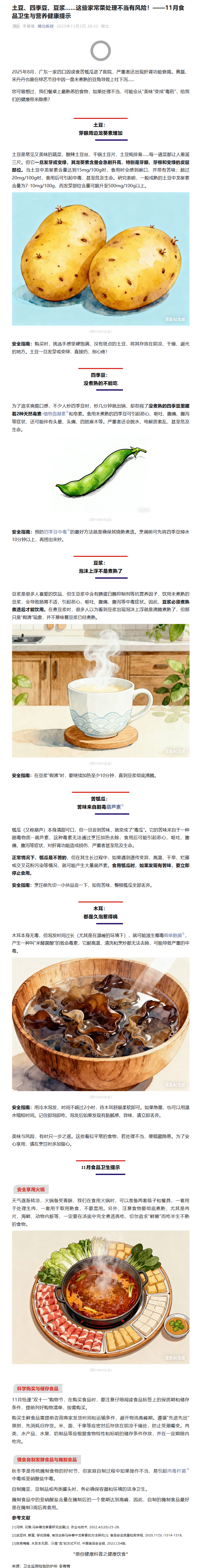 土豆、四季豆、豆?jié){......這些家常菜處理不當(dāng)有風(fēng)險(xiǎn)!——11月食品衛(wèi)生與營養(yǎng)健康提示