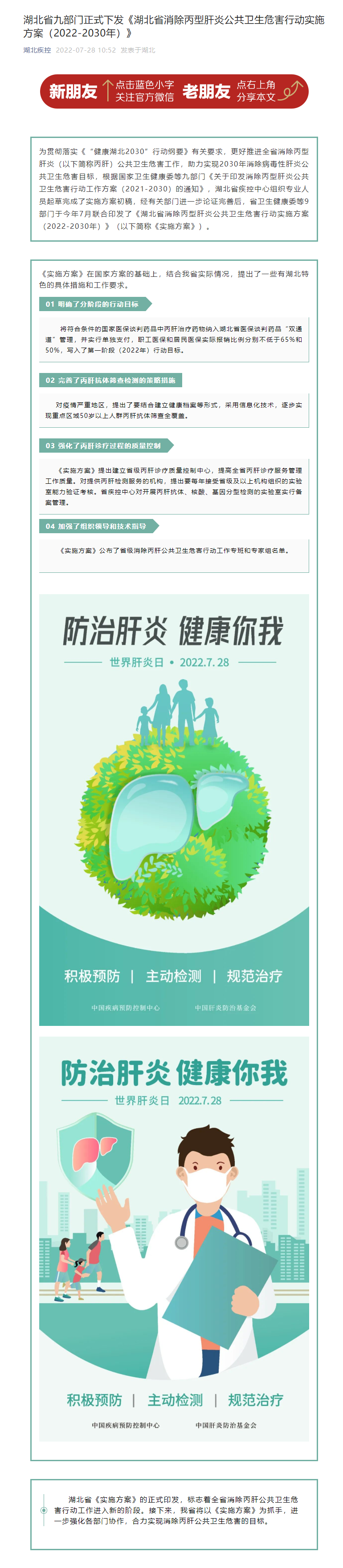 湖北省九部門正式下發(fā)《湖北省消除丙型肝炎公共衛(wèi)生危害行動(dòng)實(shí)施方案(2022-2030年)》