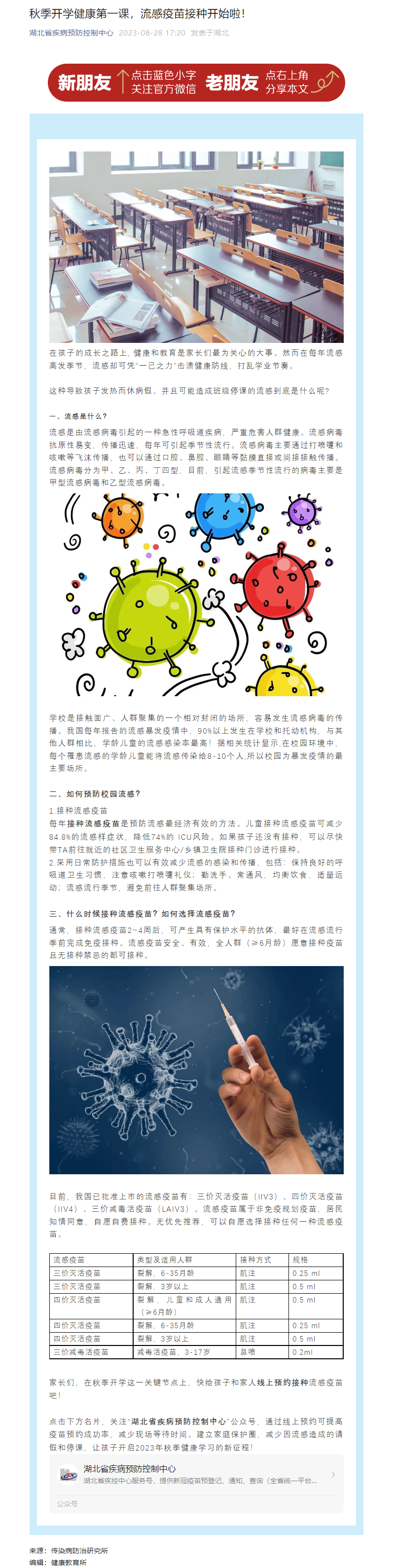 秋季開學(xué)健康第一課,流感疫苗接種開始啦!