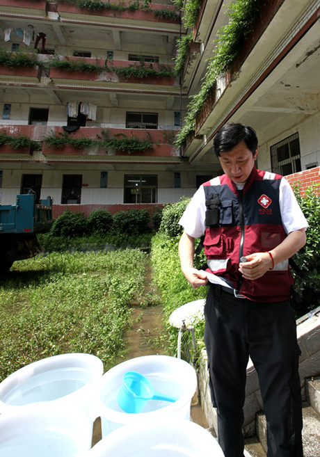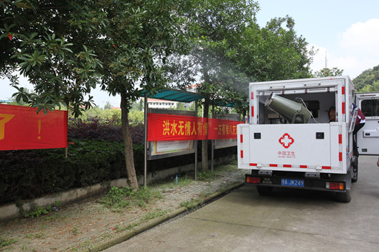 7月9日,接上級緊急命令,省疾控中心國家衛(wèi)生應(yīng)急隊(duì)迅速組織隊(duì)員10人,由占發(fā)先副院長代領(lǐng),赴蔡甸區(qū)侏儒鎮(zhèn)第四中學(xué)消泗鄉(xiāng)災(zāi)民的安置點(diǎn),出動(dòng)消毒防疫車、水質(zhì)檢測車、通訊保障車和指揮車4臺(tái),與武漢市、蔡甸區(qū)疾控人員一起開展了水質(zhì)檢測、環(huán)境消殺滅等工作,并開展了防病知識宣傳。