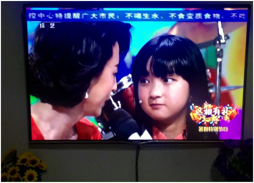 圖為:疾控中心在電視臺上插播汛期健康提示
