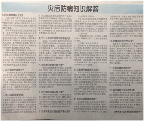 圖為:中心在“今日大冶”報紙上刊登《災(zāi)后防病知識解答》