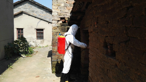 圖為:分管院長(zhǎng)陳建新正在進(jìn)行外環(huán)境消殺