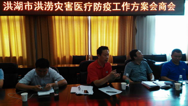 7月11日,荊州市疾控中心黨委書記、主任廖強帶領(lǐng)由傳染病防疫、血吸蟲病防疫、消殺、飲用水安全等6名專家組成的第一梯隊帶著消殺藥械趕赴洪湖。到達災(zāi)區(qū)后,立即召開了洪湖抗洪救災(zāi)防病緊急會議,指導(dǎo)成立應(yīng)急救援領(lǐng)導(dǎo)小組、應(yīng)急工作專班、救援隊,研究部署救援方案。
