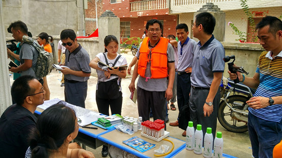 7月12日,第二批省疾控中心防疫專家到達黃石市陽新縣,他們放下行李,立刻投入緊張的救災防病工作。哪里有災情,哪里就有衛(wèi)生防疫。為了到達災情最重的栗林村,他們克服道路中斷的困難,靠機船繞湖心出行,到達栗林村看望受災居民,對生活用水檢測消毒,并為他們講解救災防病知識,分放防蚊蟲藥物,受到災區(qū)群眾的歡迎。