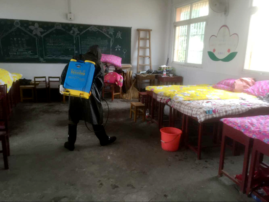 圖為災(zāi)后衛(wèi)生防疫現(xiàn)場(chǎng)
