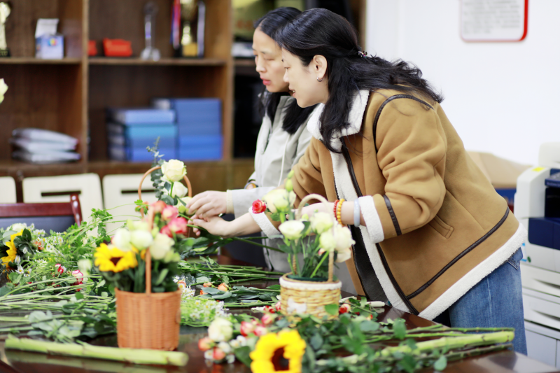 為迎接"三八"婦女節(jié)的到來,總務(wù)處工會特別策劃了一場芳香四溢的花藝盛宴!3月7日這天,平日忙碌的職場女神們暫別工作臺,在繽紛花海中開啟了一段與鮮花共舞的浪漫時光。