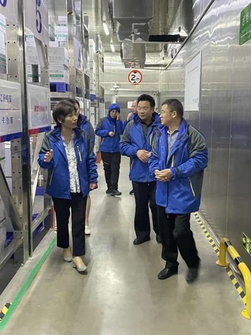 朱洪波書記一行首先現(xiàn)場查看了生物辦疫苗冷鏈建設(shè)和管理情況,并仔細詢問了疫苗接收、儲存和配送等相關(guān)工作細節(jié),要求做好每個環(huán)節(jié)的管理,環(huán)環(huán)相扣,做到冷鏈過程閉環(huán)管理,確保疫苗冷鏈安全。