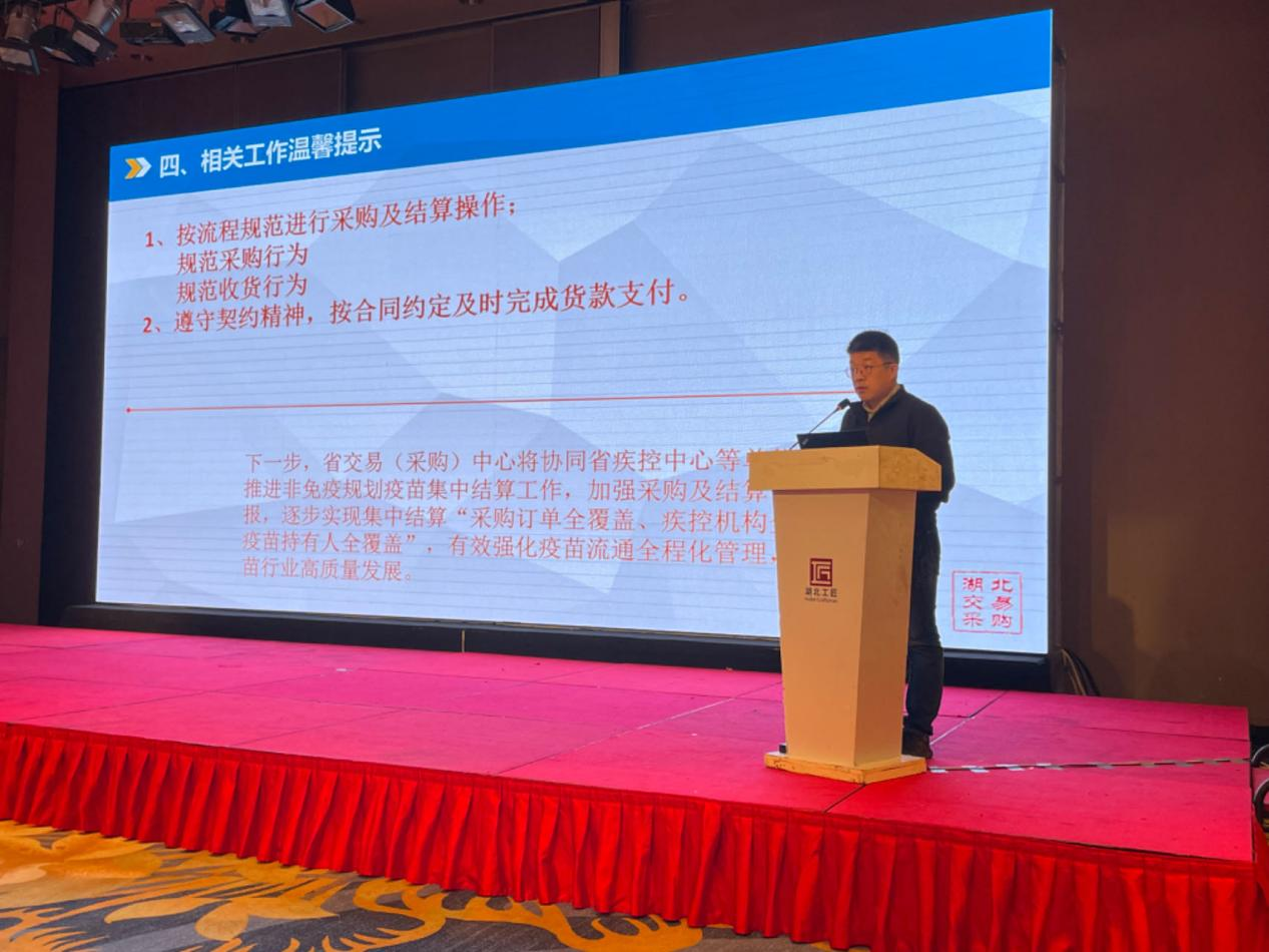 本次培訓(xùn)特別邀請(qǐng)了湖北省公共資源交易中心藥品器械采購(gòu)處陸喆處長(zhǎng)授課,陸處長(zhǎng)全面介紹采購(gòu)結(jié)算系統(tǒng)建設(shè)及運(yùn)行情況、操作流程及注意事項(xiàng),強(qiáng)調(diào)規(guī)范采購(gòu)和收貨行為,遵守契約精神。省疾病預(yù)防控制中心生物辦陳紅纓主任從疫苗采購(gòu)結(jié)算一體化、疫苗調(diào)度精準(zhǔn)化、疫苗運(yùn)轉(zhuǎn)標(biāo)準(zhǔn)化、疫苗推廣科研化四個(gè)層面詳細(xì)闡述了新時(shí)期疫苗流通管理的新要求。生物辦胡龍科長(zhǎng)分別介紹了湖北省疫苗集中采購(gòu)結(jié)算系統(tǒng)上線以來各地使用過程中的常見問題并給與解答以及疫苗臨床研究項(xiàng)目在我省開展的情況;生物辦宋雅婷介紹了2023年我省免疫規(guī)劃疫苗管理情況。本次培訓(xùn)還邀請(qǐng)了鄂州市市疾病預(yù)防控制中心夏小云主任和丹江口市疾病預(yù)防控制中心潘云波主任分享了轄區(qū)疫苗管理和疫苗臨床試驗(yàn)工作經(jīng)驗(yàn)。最后武漢金衛(wèi)信公司、南京陽光易聯(lián)公司分別對(duì)疫苗集中采購(gòu)結(jié)算系統(tǒng)和供應(yīng)鏈管理系統(tǒng)新增功能及相關(guān)問題維護(hù)進(jìn)行了業(yè)務(wù)培訓(xùn)。