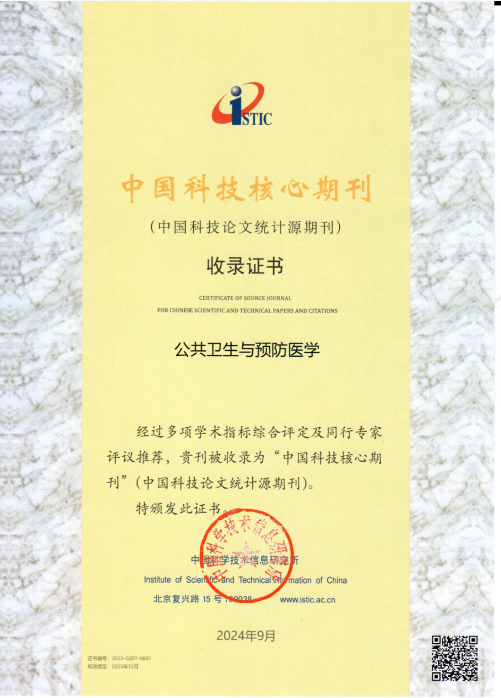 9月20日,中國科學(xué)技術(shù)信息研究所發(fā)布《2024年版中國科技核心期刊引證報(bào)告(核心版)》(以下簡稱《引證報(bào)告》),《公共衛(wèi)生與預(yù)防醫(yī)學(xué)》繼續(xù)被收錄為“中國科技核心期刊”(中國科技論文統(tǒng)計(jì)源期刊)。