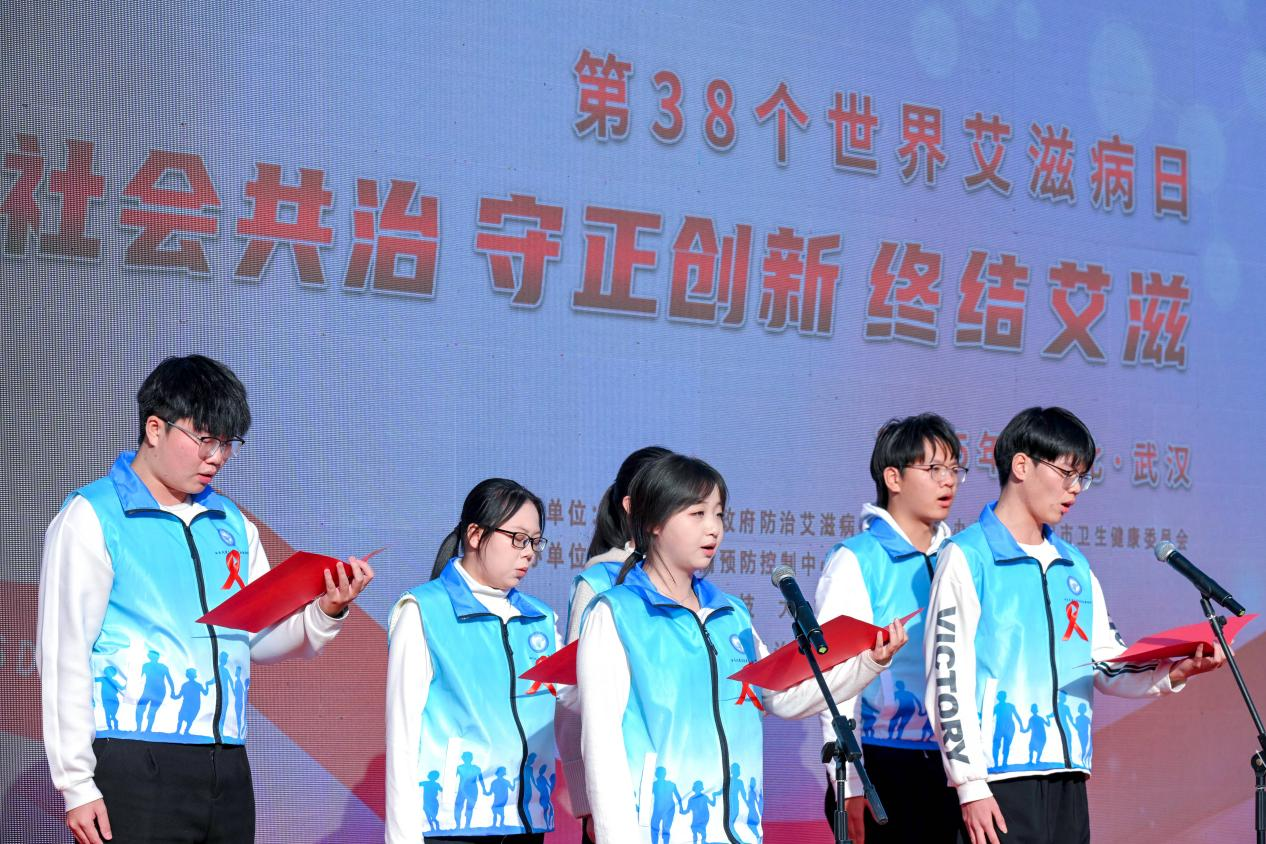 活動在武漢科技大學(xué)學(xué)生帶來的暖場表演中拉開序幕。武漢科技大學(xué)學(xué)子和武昌區(qū)疾控中心帶來的公益歌曲《擁抱你》、主題朗誦《有愛無艾》和情景劇《知“艾”防艾 守護(hù)青春》,以文藝形式化解偏見、普及知識,傳遞“不畏懼、不歧視、共攜手”的社會共識。高校學(xué)生代表發(fā)出“防艾”公益倡議,團(tuán)省委、團(tuán)市委為志愿者代表授旗,標(biāo)志著青年力量將進(jìn)一步融入防艾工作,推動“防艾”理念進(jìn)校園、進(jìn)社區(qū)、進(jìn)社會。