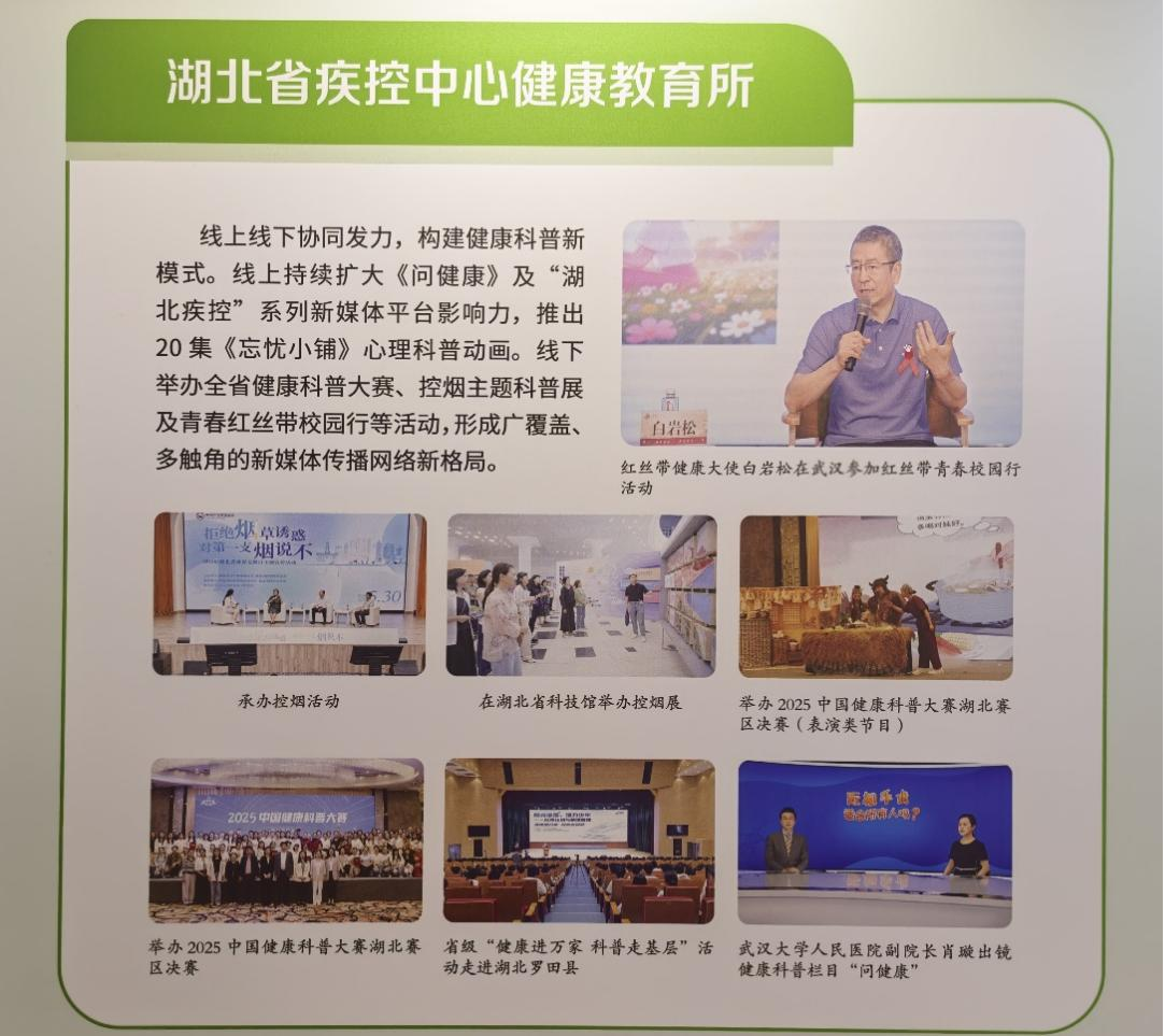 郭燕紅在講話中,對(duì)湖北省的健康教育科普館和基地建設(shè)、湖北省宜昌市率先立法出臺(tái)的全國(guó)健康影響評(píng)價(jià)地方政府規(guī)章—《宜昌市健康影響評(píng)估暫行規(guī)定》兩方面工作給予了表?yè)P(yáng)和充分肯定。大會(huì)期間,中國(guó)健康教育中心發(fā)布了入選大會(huì)交流論文征集結(jié)果,湖北省5 篇優(yōu)秀論文入選,其中由我中心健康教育所馬麗娜、卞晨陽(yáng)分別作為第一作者的兩篇入選優(yōu)秀論文。湖北省疾控中心健康教育所近年來(lái)工作主要成果還進(jìn)行了會(huì)議展板交流和視頻播放,充分展示了我省從線上到線下,形成了廣覆蓋、多觸角的健康教育新媒體傳播網(wǎng)絡(luò)新模式和新格局。