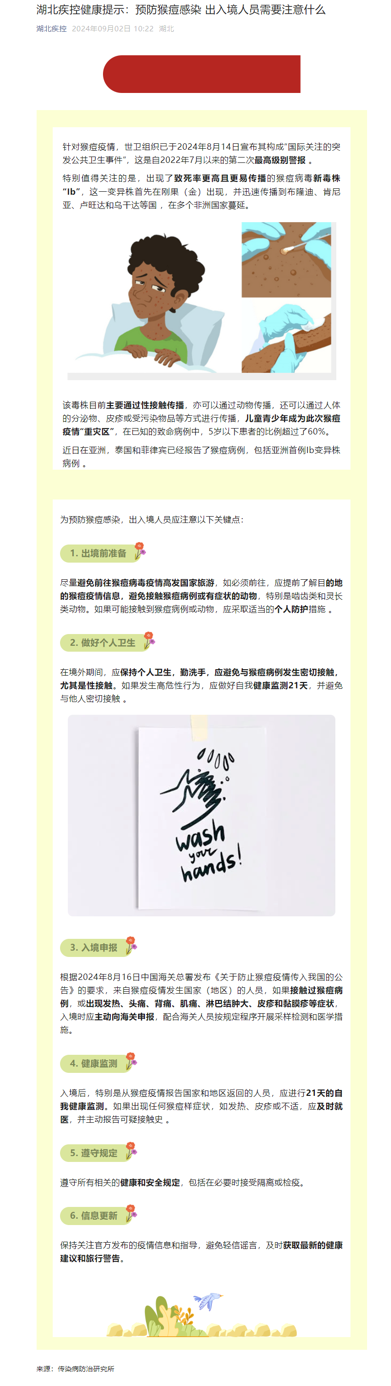 湖北疾控健康提示:預防猴痘感染 出入境人員需要注意什么